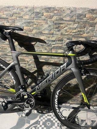 Bicicleta de carretera Merida Reacto 5000 con cuadro de carbono. - Cuadro de carbono. - Cambio shimano ultegra r8000 - Ruedas Corima 47 tubular. - Manillar integrado pG-245. - Diseño aerodinámico.