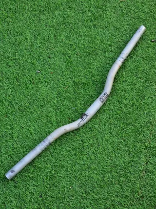 Manillar de doble altura para bicicleta, para potencias de 25.4mm. Mide 600mm. Anodizado negro desgastado, sin ser ese detalle estéticos está en perfectas condiciones para su utilización. Tienes una mtb de los noventa con manillar recto que te incomoda? Cambialo y disfruta de la comodidad de este manillar. HBR5