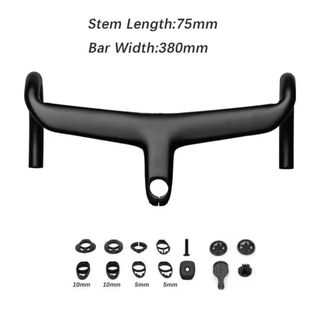 Manillar de carbono con potencia integrada 80mm y 740mm de largo. Diseño elegante con acabado negro mate. - Material: Fibra de carbono - Doblado hacia arriba: 5° - Inclinación hacia atrás: 7° - Peso: 280g ± 20g - Par de fijación: 6N·m - Ángulo del vástago: 10° - Diámetro de la abrazadera: 28,6 mm - Longitud del poste: 80 mm - Ancho (DROPC-C):740mm