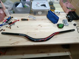 Manillar de carbono para bicicleta de doble altura. - Marca: CARBONCYCLES - Material: Carbono - Tipo: Doble altura - Anchura 780mm - Peso 195 gr Sin golpes ni fisuras, apto para enduro