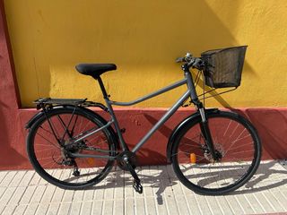Bicicleta Riveraide ST500 en color gris, ideal para paseos urbanos o rutas. Bici personalizada, color gris mate Talla L para 1,75 a 1,85 - Cuadro de aluminio. - Frenos de disco mecánicos - Portabultos trasero. - Cesta delantera Muelle de dirección Guardabarros manillar doble altura mtb y estrecho (conducción fantástica) Ruedas de 28” Transmision 9v mono plato