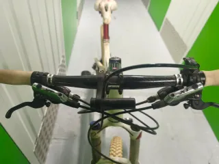 Bicicleta de montaña con doble suspensión, ideal para terrenos irregulares. Cuenta con un diseño deportivo y robusto. Talla M. Frenos hidráulicos Frenos de disco. Doble amortiguación. Frenos XT sihmano deore. Cuadro de aluminio. Ruedas de 26 pulgadas. Cambios Shimano deore. Manillar de fibra de carbono puro. ACEPTO CAMBIO DE PATÍN ELÉCTRICO: Segway, smartgyro o Kukirin. Precio de la bicicleta Quer: 750€ buen estado, no hay que arreglar nada. Precio negociable, puede que lo rebaje mucho, Dadme un precio.