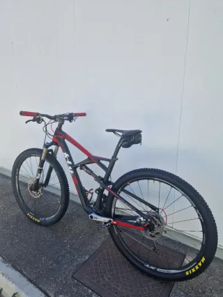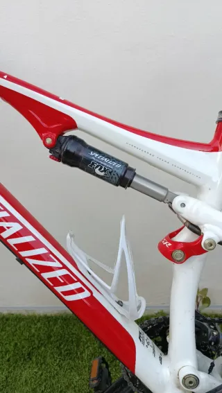 Bicicleta de montaña doble suspension Specialized epic comp.fsr en colores rojo y blanco. Talla S. - Suspensión delantera Rockshox y suspensión trasera Fox. - Frenos hidráulicos. - Rueda delantera Maxxis 26 pulgadas. - Sistema Brain. - Manillar cambiado por uno de carbono. - Cambio cambiado por uno de 80€. - Porta botellas.