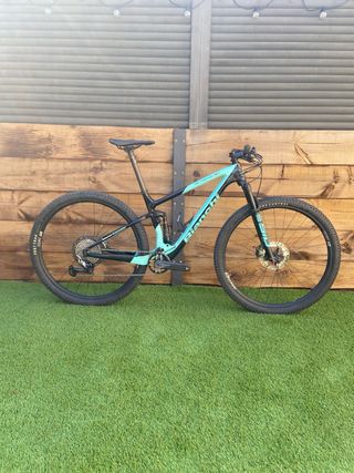 Bicicleta de montaña con doble suspensión, ideal para terrenos irregulares. Su diseño permite un pedaleo eficiente y un control superior en descensos. Manillar de carbono, regalo el de origen. -Pedales automáticos. - Cuadro de carbono - Ruedas de 29 pulgadas al 90% - Frenos de disco hidráulicos mejorados (4 pistones) regalo los de origen. - Transmisión Shimano eagle NX 12v -plato 32, regalo un 34 sin usar. - Amortiguador FOX - Horquilla delantera FOX 32 Recién revisada. Fox, btt, doble, cube, specialized, scott, bh, orbea, giant,