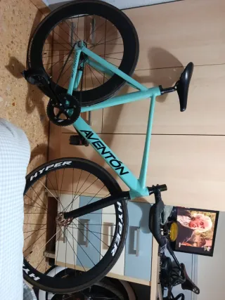 Bicicleta Fixed Aventon Mataro Low Pista. - Cuadro de aluminio talla 55. - Horquilla negra carbono. - Potencia cinelli. - Manillar deda presa carbono. - Bielas sugino pista. - Pedales wellgo. - Straps cinelli. - Cadena kmc nueva. - Tija y sillín cinelli. - Ruedas Mowheel. - Delantera aro 45mm negro mate. - Trasera aro 70mm negro mate. - Buje trasero gurpil contrapedal. - Piñón de 18 dientes. - Neumáticos continental gatorskin 28c ESCUCHO OFERTAS SERIAS.