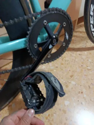 bicicleta de pista/fixie talla m ruedas miche pistard tubular horquilla de carbono bielas rotor track 170mm tija de carbono 3t muy ligera sillín san marco manillar dedda 380mm