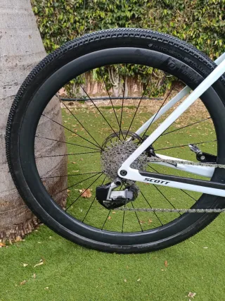 Bicicleta Scott Addict Gravel en color blanco y negro. - Cuadro de carbono. - Ruedas Zipp 303 xplr - Transmisión Shimano grx 1x12 - Frenos de disco. - Manillar integrado Syncross - Casi sin uso. - Talla M