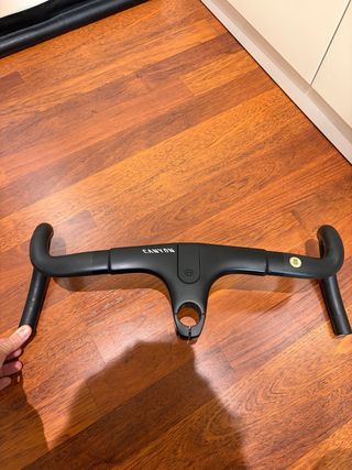 Manillar integrado de carbono para gravel o carretera. Ancho manetas 42. Ancho abajo 48,5. Largo potencia 100. Sin estrenar. Se entrega con tapa superior, soporte ciclocomputador de carbono y arandelas. Todo nuevo. Vendo por error de medidas. - Material: Carbono - Diseño integrado
