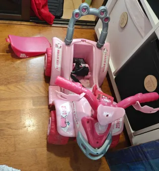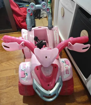 Moto quad infantil con diseño de Hello Kitty en color rosa. Ideal para los más pequeños. - Asiento cómodo. - Manillar con puños rosas. - Ruedas resistentes.