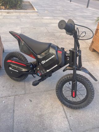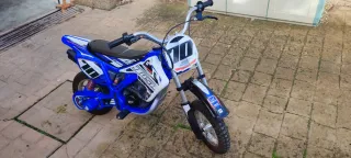 Moto eléctrica con 3 modos de velocidad 10,15,25klm/h y 15 KLM de autonomía Prácticamente sin uso, solo 3 veces y está como nueva. Sin arañazos ni golpes ni caidas - Ruedas todoterreno. - Manillar con puños de goma. - Cadena de transmisión visible.