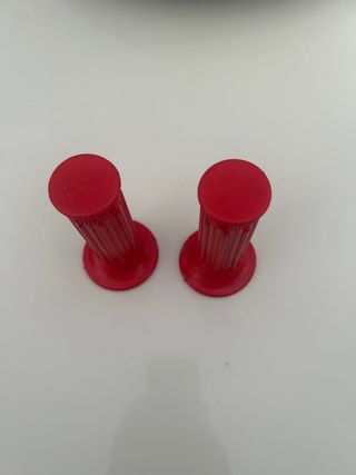 Par de puños de goma rojos para manillar bicicleta.california star x4 etc...sin estrenar de tienda antigua .tienen como manchas de de almacenamiento de estar tanto tiempo guardados - Color rojo vibrante. - Diseño acanalado para mejor agarre.