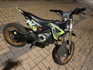 Moto eléctrica Nitro Tiger de 1300W, ideal para niñ@s. Muy poco uso.Precio negociable. - Diseño deportivo en colores negro y verde lima. - Ruedas todoterreno con llantas doradas. - Asiento acolchado. - Manillar con controles. - Batería de litio.