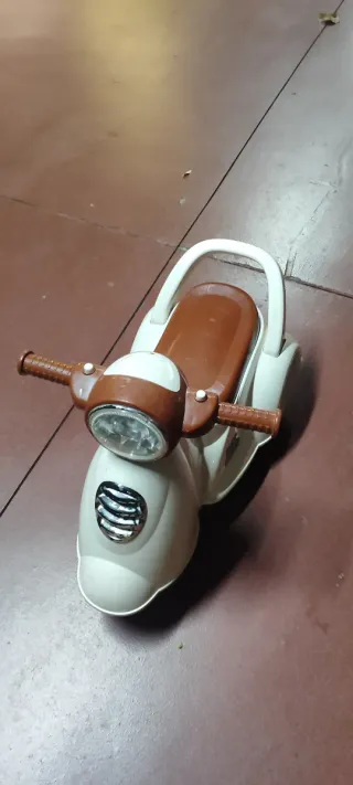 Triciclo con diseño de moto Vespa para bebés. - Color blanco y marrón. - Asiento cómodo. - Manillar con puños texturizados. Ver sin compromiso en El Escorial. En mi perfil hay más cosas de bebés y peques. Si interesan otros productos hacemos rebaja.