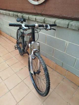 Bicicleta de montaña con cuadro de aluminio. Videos y fotos al privado - Cuadro de aluminio. - Ruedas 29 -Frenos tecktro -Horquilla de 100mm -manillar amplio y comodo. -Talla XL La bici tiene 4 meses tengo la factura la envio por privado Tiene los pedales cambiados a unos mejores con pines y agarran mejor doy una cubierta gratis junto a la bici y unos puños de repuesto