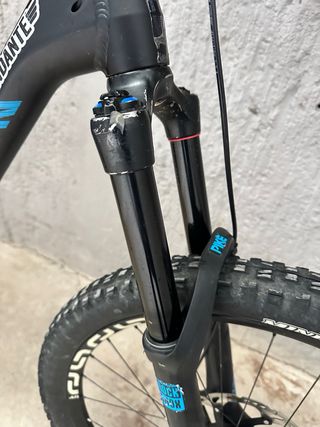 Revisión de los dos amortiguadores hace dos meses en servicio oficial. Componentes gama alta Manillar, potencia EL GALLO Cuadro YETI en negro y rojo Llantas EL GALLO con neumáticos Maxxis HIGH ROLLER DE 26X2.35 delante y 26x2.40 detrás ambos al 90% Radios reforzados de 2,2 Monoplato con 9 piñones Horquilla RockShox Lyric 170mm Amortiguador trasero Marzocchi Roco TST R Cambio SRAM X-7 con patilla de carbono. Basculante trasero de carbono forjado. Discos flotantes de 4 pistones, 205 mm delantero y 185 mm trasero Frenos HOPE EVO con latiguillos metálicos Sillín con tija telescopica y pulsador en manillar Puños nuevos Talla M