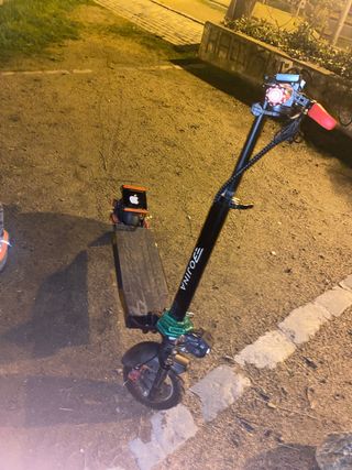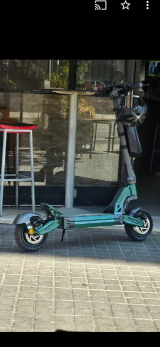 Patinete eléctrico de color negro, ideal para desplazamientos urbanos. - Diseño robusto y moderno. - Manillar ajustable. - Ruedas todoterreno con gomas nuevas Motor de 1000w Bateria de 52 v 20ah Frenos en perfecto estado Incluye cargador