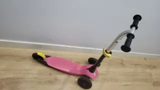 Patinete infantil de color rosa, ideal para que los más pequeños aprendan a patinar. Se puede usar como patinete o como correpasillos con asiento. - Asiento plegable y extraíble, a diferencia de otros sin necesidad de desatornillar - Ruedas luminosas. - Manillar ajustable en altura.