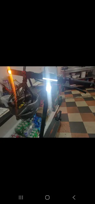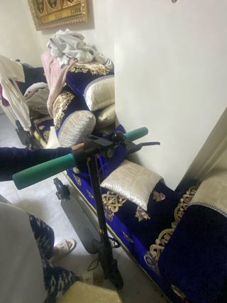 Patinete eléctrico con pantalla digital. - Manillar con accesorios. - Puño de aceleración.le falta la pata para dejar parado ,viene con su casco y cargador,..no hago envíos,,,