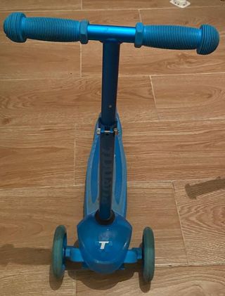 Patinete infantil de tres ruedas en color azul. - Manillar ajustable. - Ruedas de goma. - Plataforma antideslizante.