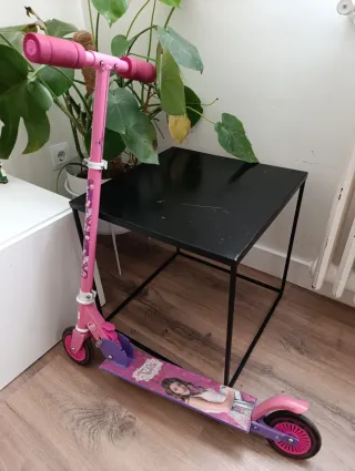 Patinete infantil de color rosa, ideal para pasear por la calle. Diseñado para los más pequeños. - Manillar ajustable en altura (de 74 a 84 cm) - Ruedas resistentes para un deslizamiento suave. - Plataforma con diseño Violetta Disney - Freno trasero. ATENCIÓN: no se puede plegar