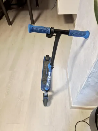 Patineta con estructura azul y negra. - Patineta de tres ruedas. - Ruedas de goma. - Manillar ajustable.lo interesado ponerse en contacto conmigo un ,600688602