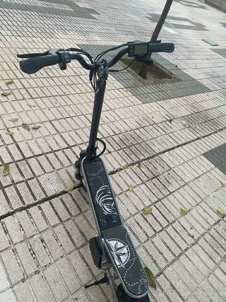 Patinete eléctrico en color negro, ideal para desplazamientos urbanos. - Pantalla digital con información de velocidad y modo. - Manillar con puño de aceleración. - Timbre integrado. El patin esta bien tiene la bateria y todo solo le falta el cristal y mirar si enciende yo no lo e podido probar porque no tengo cargador