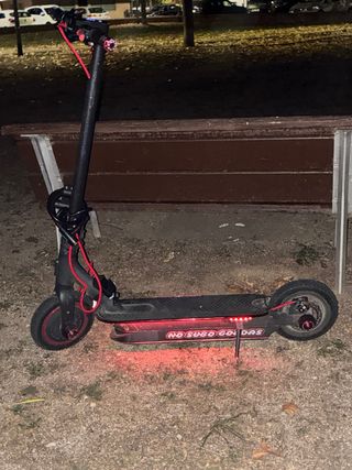 Patinete eléctrico 48V – Muy buen estado Vendo patinete eléctrico negro con detalles en rojo, en muy buen estado y funcionando perfectamente. Dispone de batería de 48V y 20Ah, ideal para buena autonomía y uso diario. 🔧 Extras incluidos: Llave de contacto Sujeta móviles Mochila para el manillar Puños tipo moto para mayor comodidad Luces LED rojas inferiores para mejor visibilidad nocturna Ruedas en buen estado, diseño deportivo y conducción cómoda y estable.