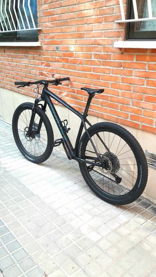 Bicicleta de ALTA GAMA practicamente sin uso (sólo por asfalto y pistas) Cuadro de carbono visto satinado de la serie FACT 11m, ultraligero (900gr) Horquilla ROCK SHOX SID con el sistema BRAIN, que bloquea automáticamente la suspensión cuando no es necesaria; y mantenimiento al día Tija y manillar de carbono S-WORKS Transmisión SRAM GX EAGLE de 36 dientes x 12 coronas (10-50), con bielas de carbono Ruedas de carbono ROVAL CONTROL Geometría CROSS COUNTRY optimizada que combina rendimiento y manejabilidad Revisada y puesta a punto PVP original: 5700€ Peso: 9,3 kg