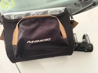 Bolsa para manillar de bicicleta de la marca Massi. - Color negro. - Compartimento frontal. -Compartimento lateral - Cierre de cremallera.