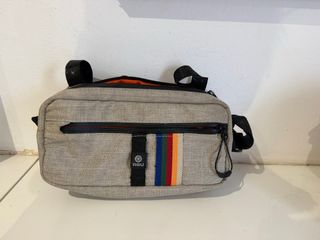 Bolsa de manillar para bicicleta Brompton en color gris y negro. Diseñada para ser práctica y funcional. - Compartimento principal espacioso. - Bolsillo frontal con cremallera. - Correa ajustable para el hombro. - Logo triangular de Brompton en la parte frontal. Esta bolsa no es nueva, pero aún se puede usar. La bolsa no incluye estructura de soporte, por lo que deberá adquirirla por separado si aún no tiene una. Esta bolsa tenía una capa de plástico «rígido» en la parte inferior, pero se ha roto en pedazos más pequeños entre las capas de tela. No se puede ver, pero se puede sentir.