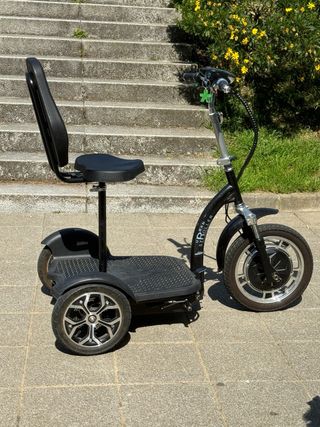 Scooter eléctrico diseñado para personas con movilidad reducida. Cuenta con un asiento cómodo y manillar ajustable. - Tres ruedas para mayor estabilidad. - Plataforma antideslizante. - Ruedas con llantas de aleación. tiene un motor de 1000w el más grande de de todos los triciclos, igual que este, nuestras el sillín lo tiene cambiado y tiene uno con reposabrazos más cómodo ,lleva su cesta y espejos que ahí no salen. La batería es de litio. si tienes alguna pregunta aquí estoy para contestarte. Saludos