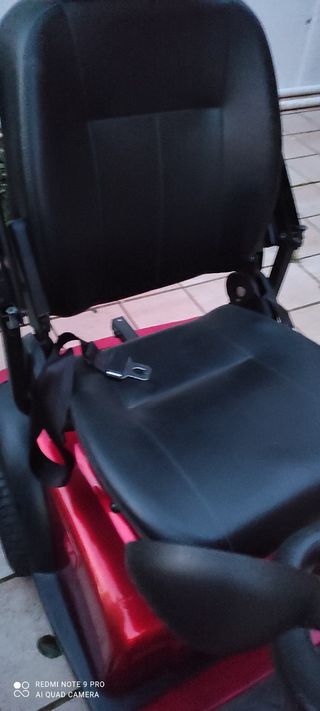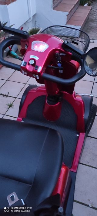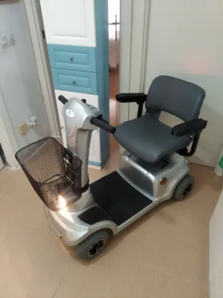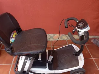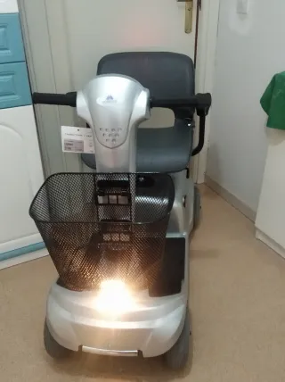 Usado dos veces, con pequeño golpe delante inapreciable; -Manillar ajustable -Asiento abatible ajustable en 360º en 6 posiciones y ajustable en 3 alturas fijas. -Reposabrazos abatibles y ajustables -Medidas y peso: Longitud: 116 cm. Ancho: 58 cm. Altura: 95 cm. Peso con baterías: 67,5 kg. Peso de batería: 12,7 kg. Peso máximo soportado: 135 kg -Ruedas: Diámetro de 23 cm. Ruedas neumáticas. -Asiento: Acolchado con respaldo plegable. Ancho: 46 cm. -Características: Velocidad max: 8 km/h. Pendiente máxima: 12 grados. Carga max: 135 kg. -Características técnicas: Motor: 450W, 3700 r.p.m. Batería de gel: (2) 12V. 36Ah