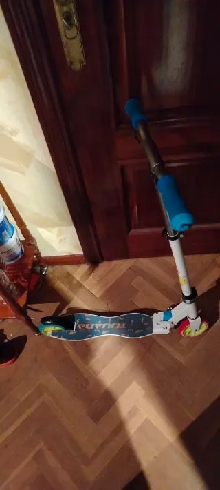 Lote de artículos de segunda mano.- Scooter con ruedas azules y manillar.-