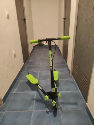 Scooter de tres ruedas Flipper Air en color negro y verde. - Manillar ajustable. - Plataformas para los pies. - Ruedas delanteras dobles.