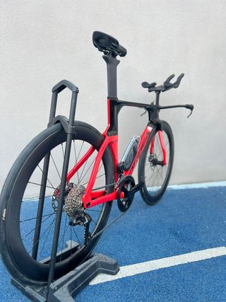 Bicicleta Triatlón Talla M. Cuidada y en muy buen estado. - Cuadro de carbono. -Grupo Sram Force (platos, bielas, cambio y desviador). -Levas de cambio Sram TT500. -Manillar Aura-Pro T3. -Ruedas Shimano RS. -Pedales Look Keops. -Cassete Sram 10v. -Cadena nueva con pocos kilómetros