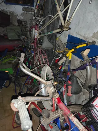 Bicicleta de carretera antigua, ideal para coleccionistas o amantes del ciclismo vintage. - Cuadro de metal. - Manillar curvo con cinta blanca. - Ruedas de radios. - Portabidones.