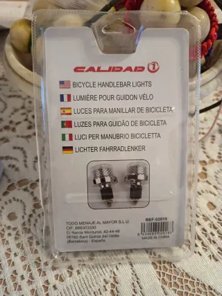 Par de luces para manillar de bicicleta. - Diseño plateado y negro. - Incluye tornillos de sujeción. -color azul