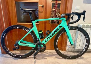 Piezas originales Horquilla: Orca Aero OMR carbon fork, full carbon steerer, tapered 1-1/8" - 1,5" , carbon dropouts Material de la horquilla: carbon Desviador delantero: Shimano Ultegra Di2 Cambio trasero: Shimano Ultegra Di2 Biela: Shimano Ultegra Frenos: Shimano Ultegra Ruedas: Fulcrum Neumáticos: Vittoria Sillín: Included Tija de sillín: Orbea Aero OMR Manillar: FSA Trimax Compact Cassette: Shimano Ultegra Lasruedas son SSACA CARNON WHEELS Y EL MANILLAR ES UN VISIÓN METRON CARBONO Piezas originales Horquilla: Orca Aero OMR carbon fork, full carbon