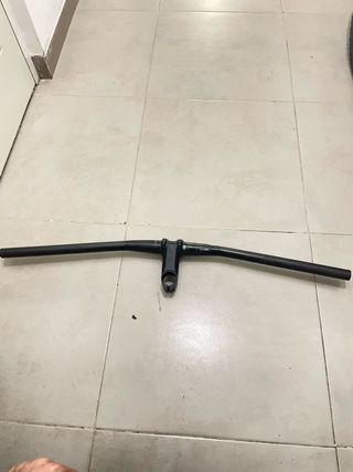 Manillar integrado de carbono para bicicleta de montaña. - Original Megamo. - Diseño aerodinámico. - Acabado en negro mate. - 760 mm de longitud. - Como nuevo, casi sin uso. - Potencia de 60mm. - Peso 250gr aprox.