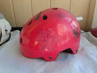 Casco infantil de color rosa, ideal para usar con bicicleta o patines. Presenta un diseño con flores 10 € unidad - Color: Rosa - Diseño: Flores