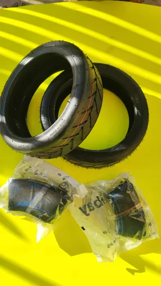 Juego de cubiertas y cámaras de repuesto para patinete Xiaomi. Ideales para mantener tu patinete en perfecto estado. - Dos cubiertas. - Tres cámaras.