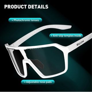 Gafas deportivas con lentes fotocromáticas. - Montura blanca. - Incluye funda y paño de limpieza. - Diseño moderno y resistente.