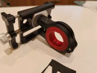 Soporte de aluminio para móvil, ideal para bicicletas o patinetes. - Fabricado en AL 6063 CNC. - Ajustable para diferentes tamaños de móvil. - Diseño robusto y ligero.