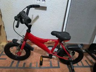 Bicicleta infantil de color rojo, ideal para los más pequeños. - Ruedas de aprendizaje incluidas. - Diseño deportivo.