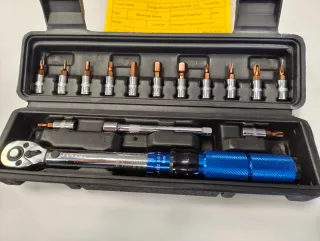Herramienta de precisión JINSOL para ajustar el par de apriete. - Rango de 2-24 Nm. - Incluye juego de puntas. - Maletín de transporte.