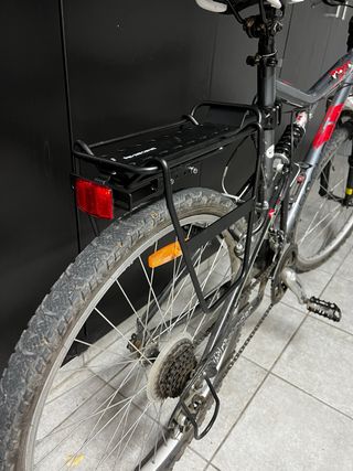 Portaequipajes de metal negro para bicicleta. Para llevar equipaje Max 10kg - Diseño robusto y duradero. - Incluye reflector rojo trasero.