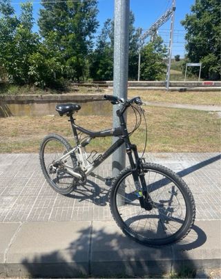 Bicicleta Rockrider de 26 pulgadas. - Cuadro de doble suspensión. - Ruedas todoterreno. -Ruedas de 26 pulgadas. - dos amortiguadores delanteros y traseros. la bici está en muy buen estado.
