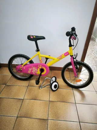 Bicicleta infantil amarilla y rosa