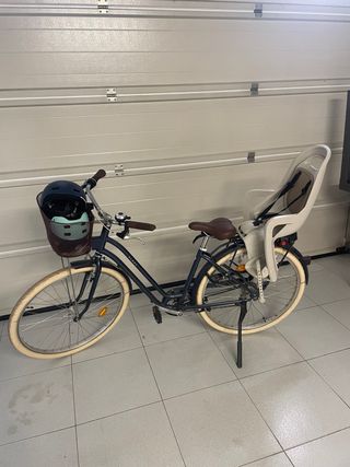 Bicicleta urbana azul con silla para niño