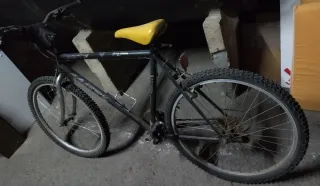 Bicicleta de montaña Monty para revisar. Ideal para quien busca un proyecto. - Cuadro de bicicleta. - Ruedas de bicicleta. - Sillín amarillo.